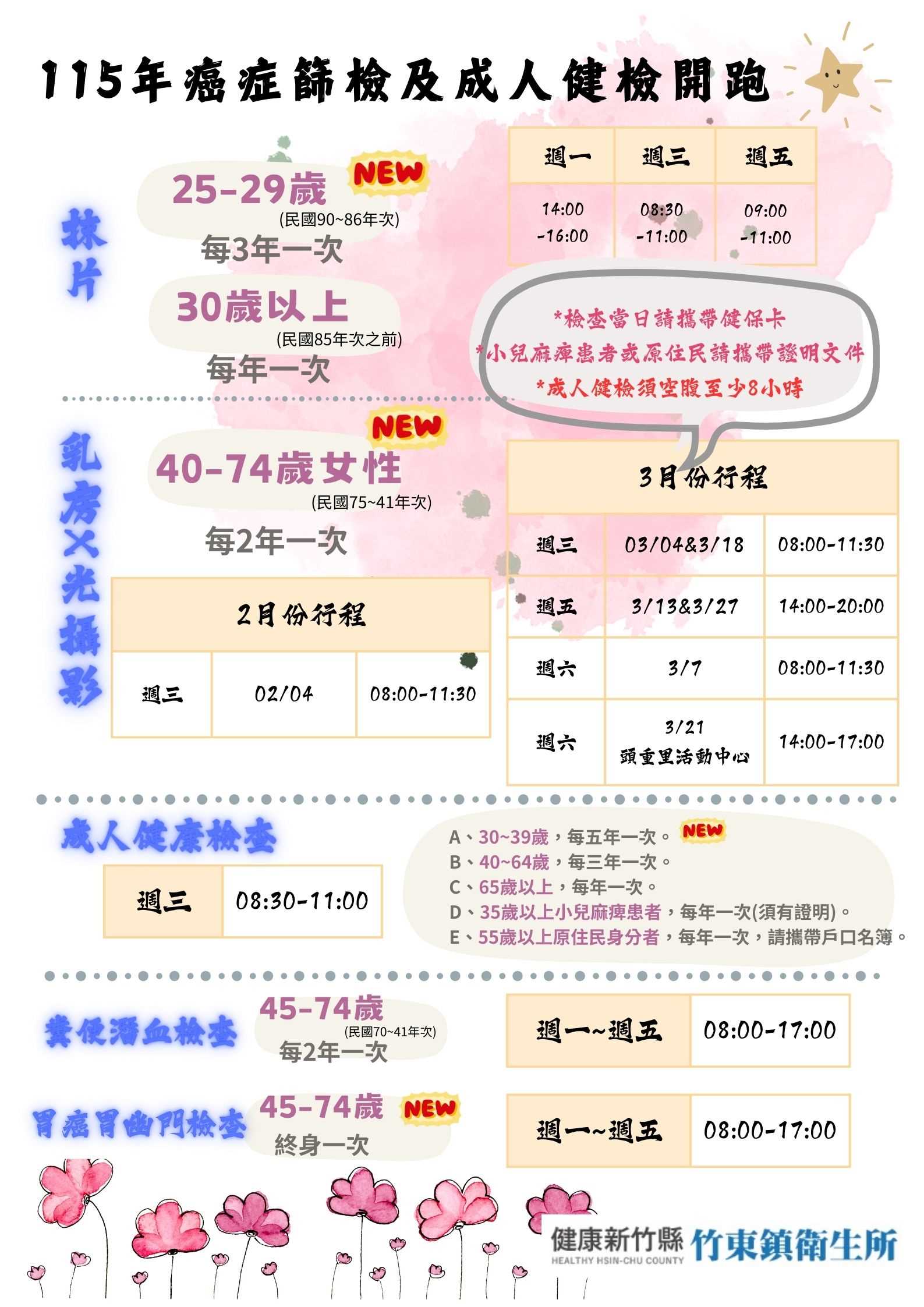 國民健康署自99年起全面推動子宮頸癌、乳癌、大腸癌及口腔癌等四癌篩檢,並於111年7月開辦肺癌篩檢。國際研究證實四癌篩檢(子宮頸癌、乳癌、大腸癌及口腔癌)可早期偵測癌症及癌前病變進而降低死亡率;本土研究也顯示,每2年1次糞便潛血檢查可以降低大腸癌死亡率35%;定期接受口腔黏膜檢查,可降低有嚼檳榔及吸菸習慣男性26%的死亡風險;每2年接受1次乳房X光攝影檢查可降低41%的乳癌死亡率;透過子宮頸抹片篩檢,可以降低70%的子宮頸癌死亡率。另外,國際研究指出胸部低劑量電腦斷層檢查(LDCT)與胸部X光相比,可降低重度吸菸者20%肺癌死亡率。112年全國子宮頸癌、乳癌、大腸癌、口腔癌與肺癌等五項癌症篩檢達487.2萬人次,共發現約1.1萬名癌症及5.2萬名癌前病變,成功拯救6.3萬餘名生命。